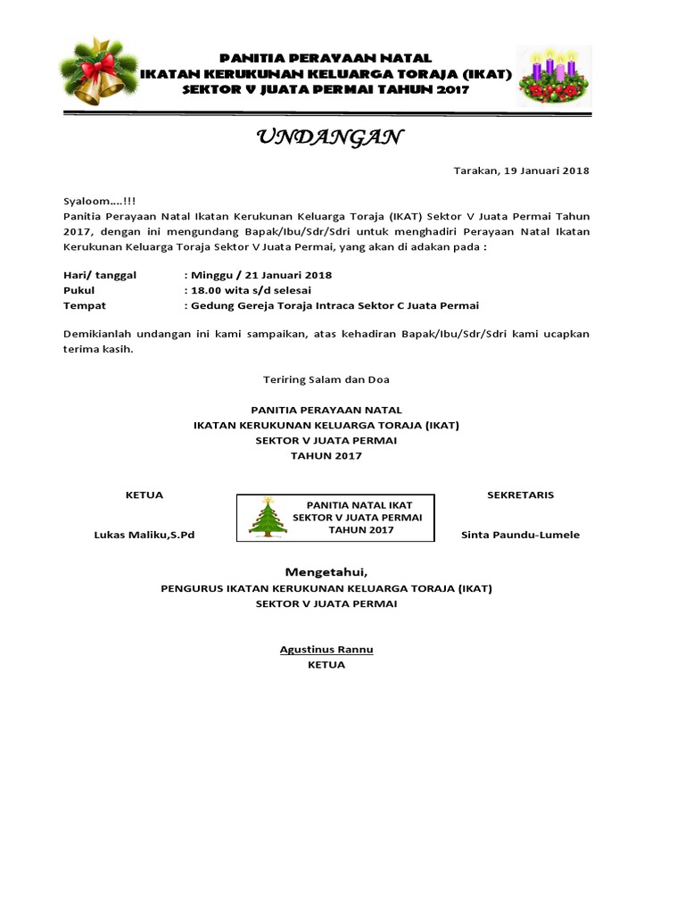 Contoh surat undangan resmi dapat digunakan agar surat undangan yang kamu buat sesuai berikut kami berikan contoh surat undangan resmi yang bisa dijadikan referensi dalam pembuatannya. Ketika ingin menyelenggarakan acara perayaan natal, maka tentu dibutuhkan. Panitia natal ikatan mahasiswa papua (imapa). Tenang… daripada anda pusing memikirkan design undangan, download aja contoh undangan natal unit versi ekonomis ini, setelah selesai download anda bisa langsung melakukan perubahan pada. Dalam mendesain undangan ternyata tidak hanya dinilai dari soal bentuk dan warnanya. Tag:christmast, kristen, natal, nias, yaahowu. Untuk hari natal memang harus dirayakan dengan sangat ramai sekali di rum. Contoh undangan natal unik model desain undangan. Selamat datang, apakah anda sedang contoh surat undangan rapat. Disini akan saya buat contoh undangan natal untuk natal organisasi. Contoh surat undangan rapat osis. Kumpulan contoh undangan pernikahan terbaik beserta isinya. 1684 x 1190 png 763 кб.