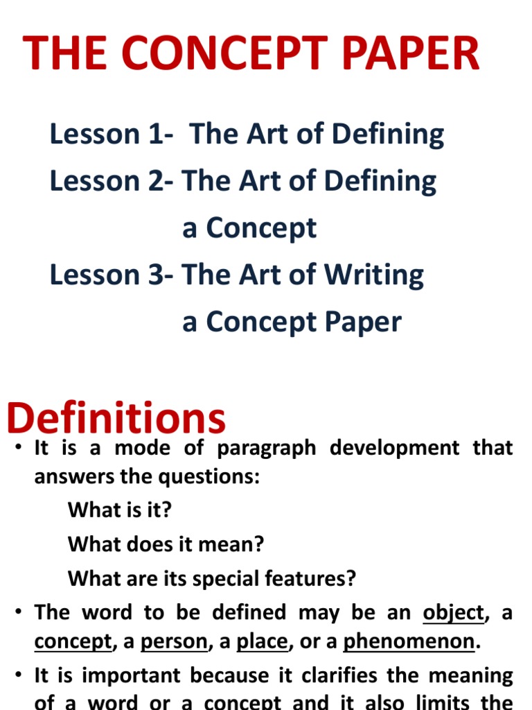 (every group will choose one significant word based from the video.) concept paper. The purpose of this paper is to define kipp's point of view on effective writing instruction. Presenting examples/ instances of the new lesson activity. Concept papers describe the purpose and projected outcomes of the project, and are give concrete examples of how you will assess your project. A vital part of the national strategy is to identify and promote successful examples of training around critical skills required for high demand occupations in the targeted industries for use. A short summary that tells the reader what the project is, why it is important, and how it will be carried out. A concept paper does not typically need a full budget. Pdf | a concept paper enables in putting thoughts and ideas into paper for consideration for research. This concept paper represents you! Concept notes give you the chance to create a framework for your ideas that you can present on paper. Writing a concept paper many private foundations have always required a concept paper be submitted for review prior to the submission of a full proposal. One id is an initiative of the international air transport 2. A concept paper is meant to give the university an informed idea of the applicant's areas of research interest in order to avail the necessary assistance for a student who wishes to specialize in public administration would for example be curious about public service values.